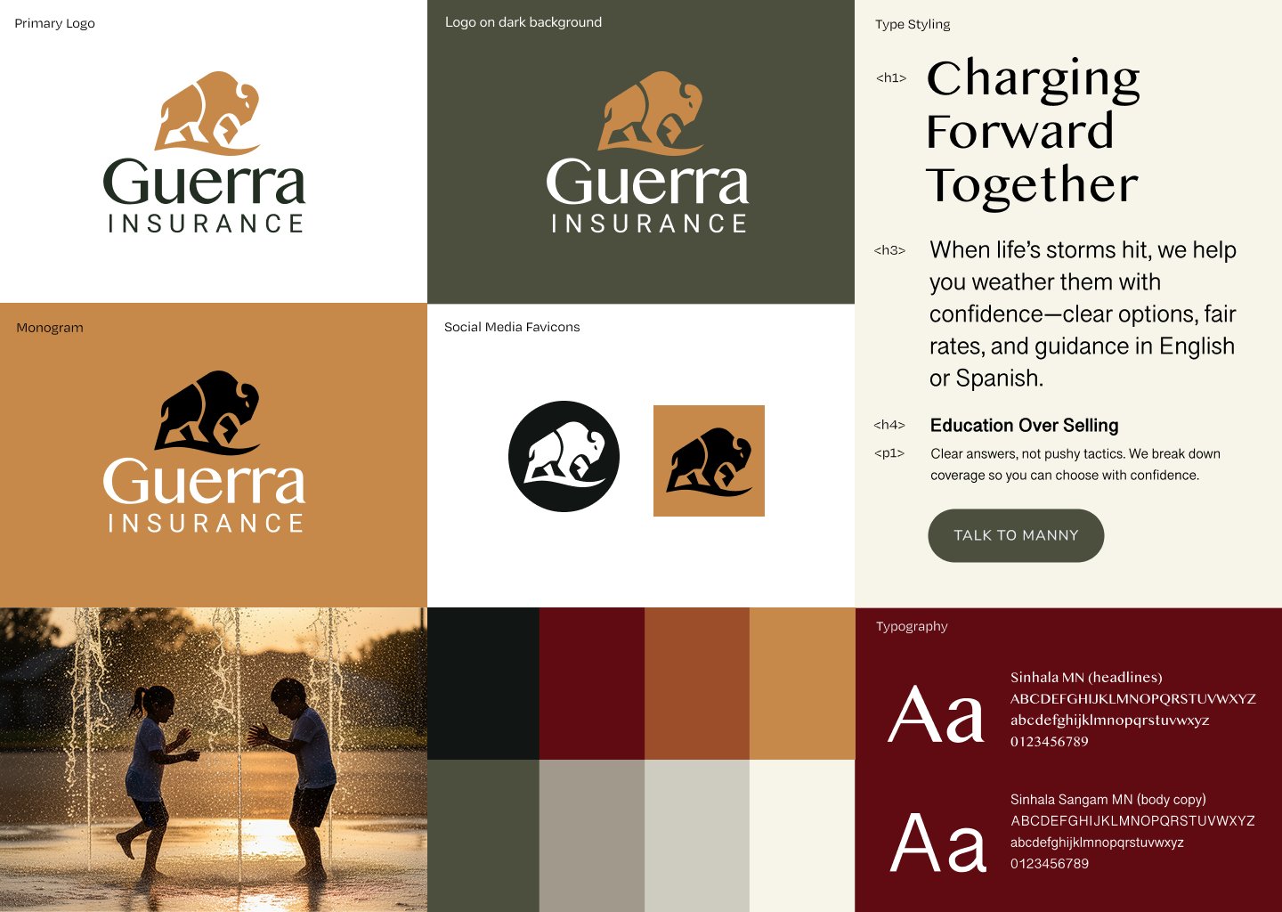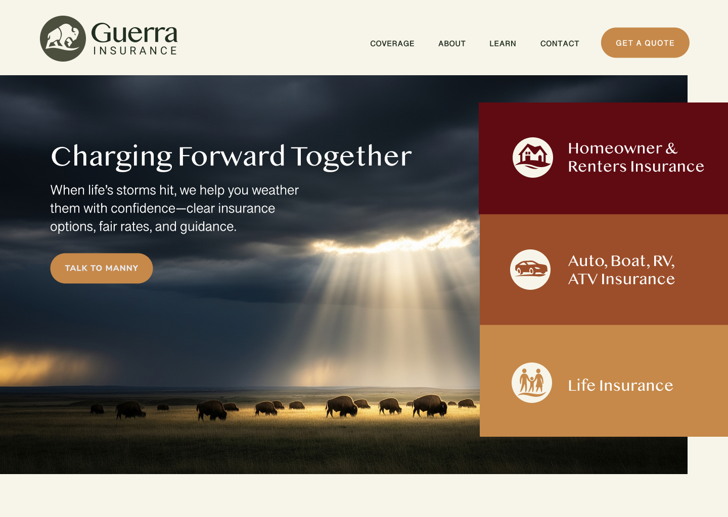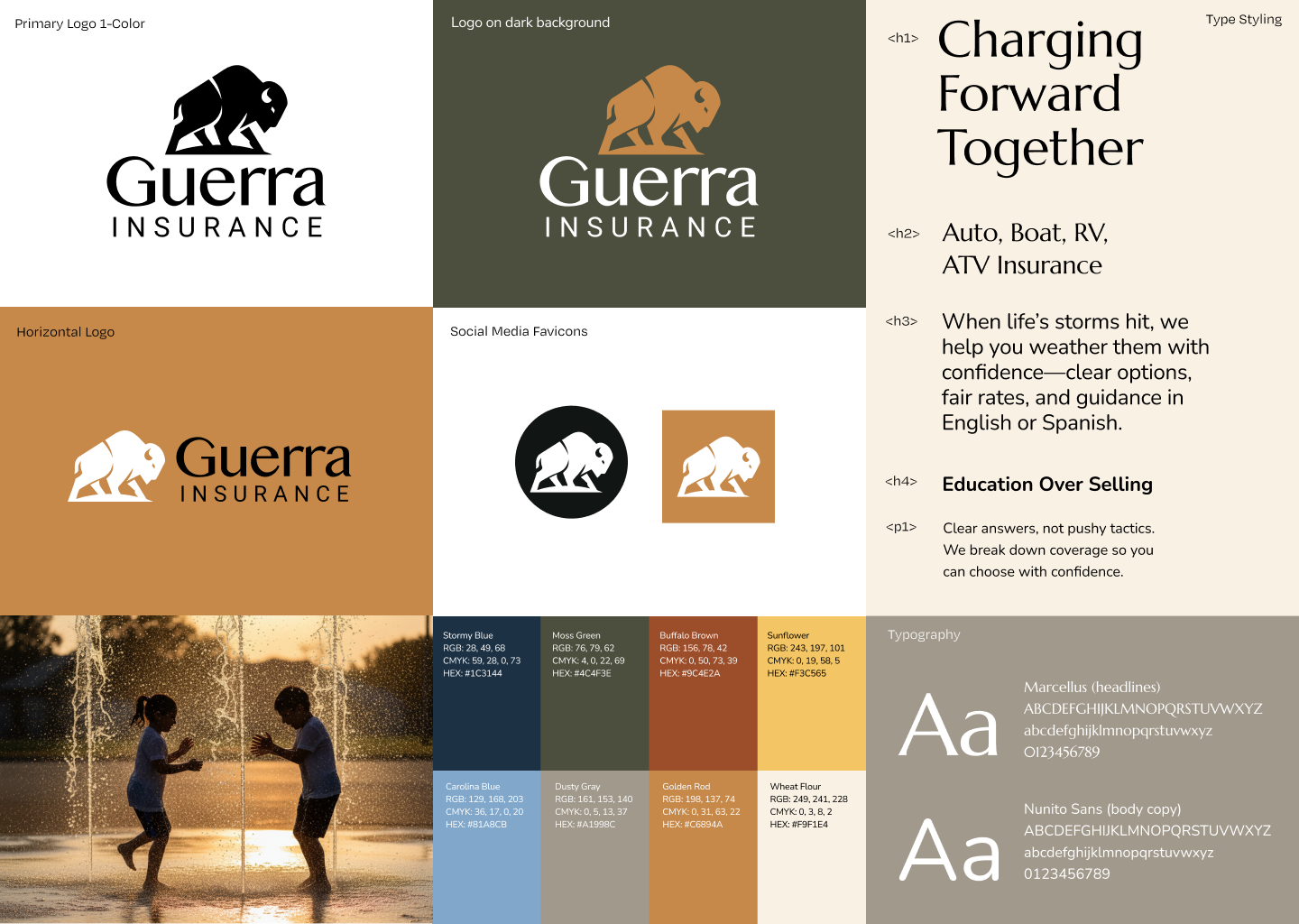 After conversations with the clients, I was able to tease out a solid positioning to differentiate theirpractice from the herd. And in the process he shared his admiration for Buffalo’s as they are known for racing towards the heart of a storm rather than away. We added in the tagline “Charing Forward Together”. This felt like a perfect mascot for an Insurance broker located in Kansas.