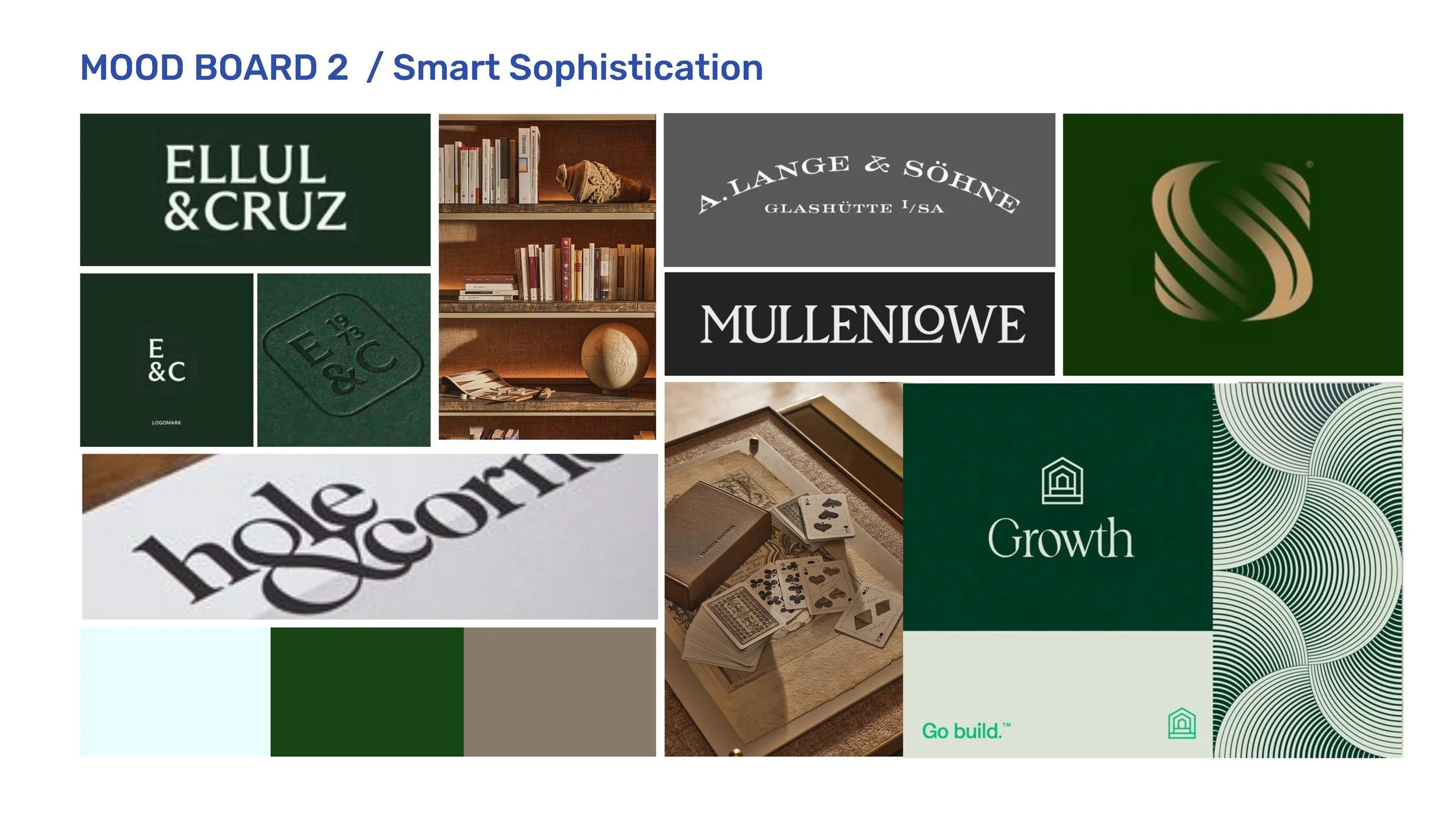 Based on the Discovery Phase, we pulled together 3 Mood Boards. This tool helps to quickly visualize potential directions and gauge design preferences. Each mood board is curated with a mixture of color palettes, type styles and image treatments that reflect the intended design direction.